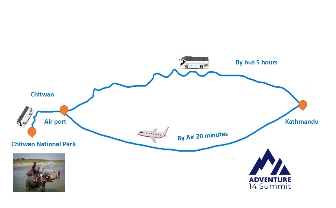 Chitwan is approximately 5โ6 hours by road from Kathmandu. Factoring in travel time is important, especially for shorter itineraries.