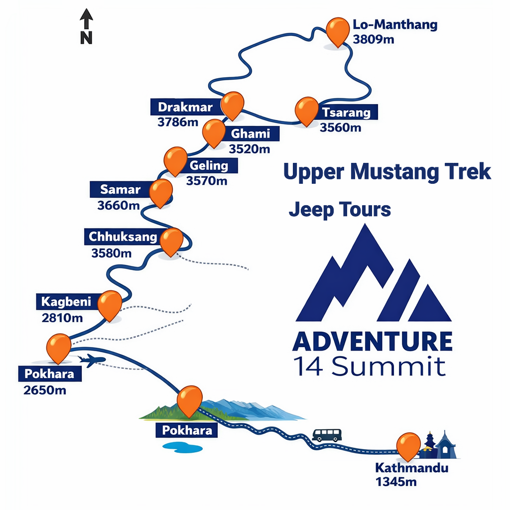 Most Upper Mustang jeep tours begin either from Pokhara or Jomsom, depending on your preferred itinerary. From Jomsom, the route follows the Kali Gandaki Valley, one of the deepest river valleys in the world. Along the way, youโll pass through picturesque villages such as Marpha, renowned for its apple orchards and traditional lifestyle, and Kagbeni, which serves as the gateway to Upper Mustang. The roads here are winding, often hugging cliffs and crossing arid landscapes that create an almost otherworldly atmosphereโperfect for photography enthusiasts and adventure seekers alike.